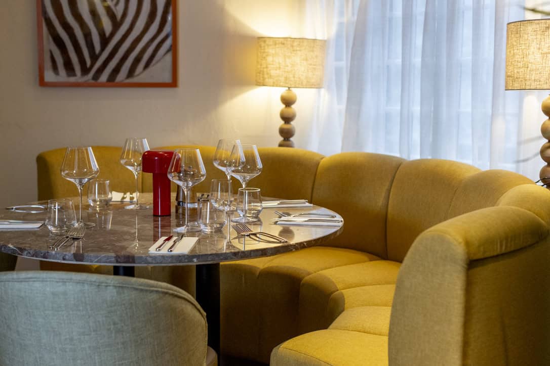 At the heart of the scheme are wide fluted banquettes and sleek bench seating, designed to maximise comfort and flow throughout the restaurant. Plump cushioned backs invite guests to settle in, whether for an intimate meal or a long, sociable evening.
